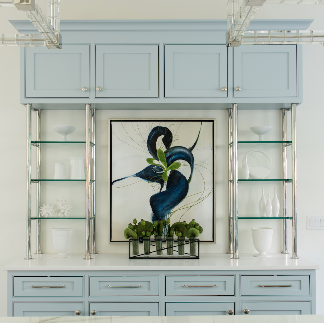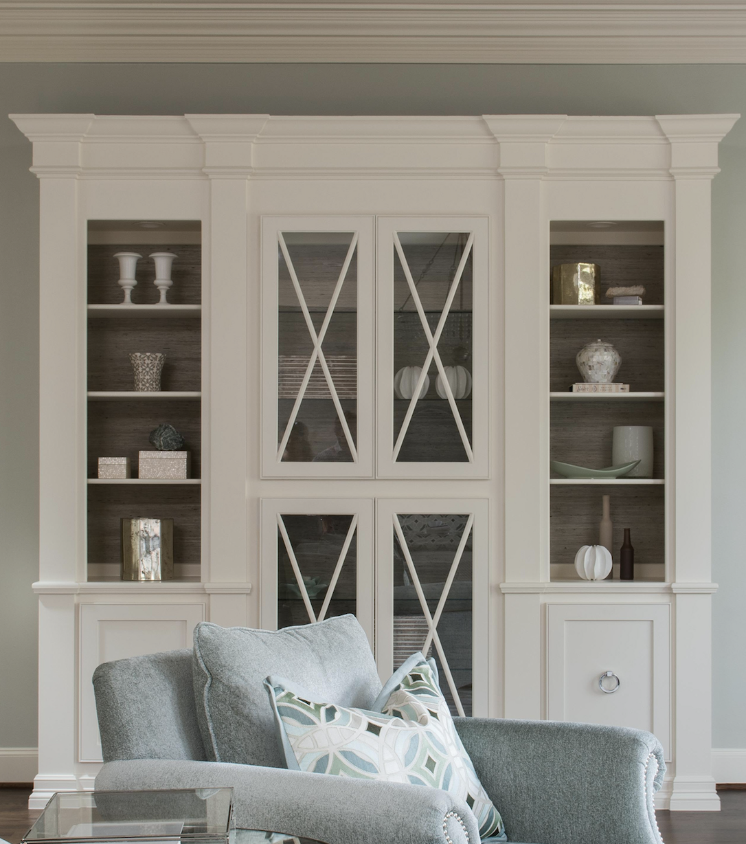 The key to a bookcase is to not get it too busy. By repeating similar patterns and elements you create a rhythm and purpose to the shelves