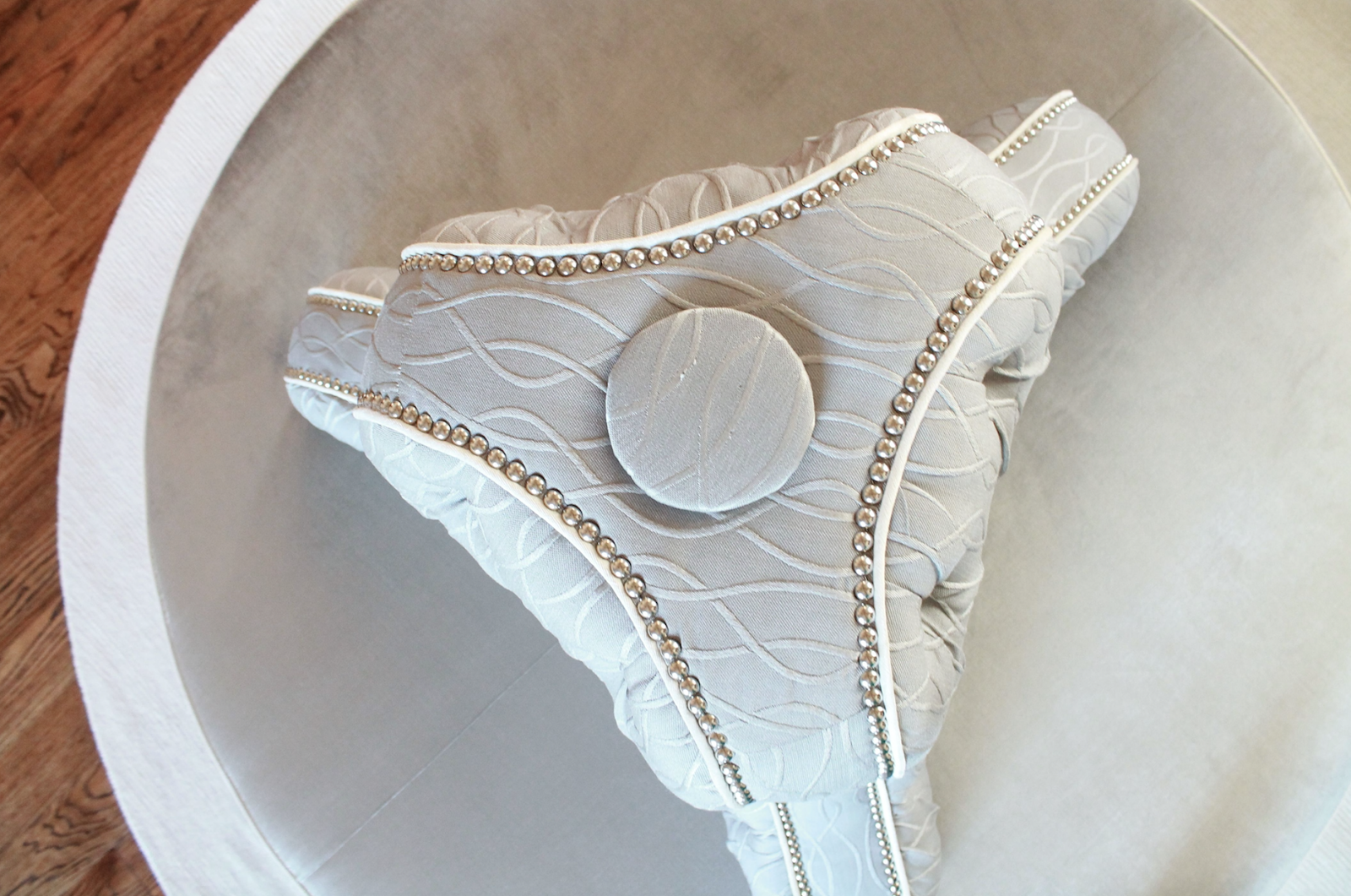 We completed many rooms in their home, but one of the most unique pieces is this round 3 sided ottoman in the foyer of this gorgeous home