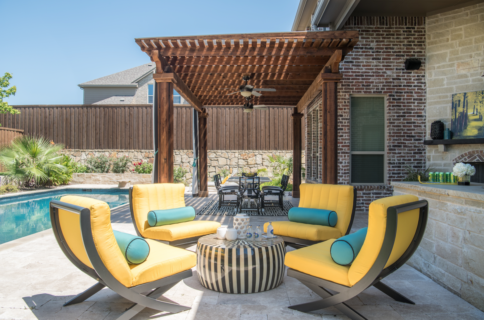 We picked a bright yellow accent to pop in the Texas summer heat, and we love pairing it with a teal!