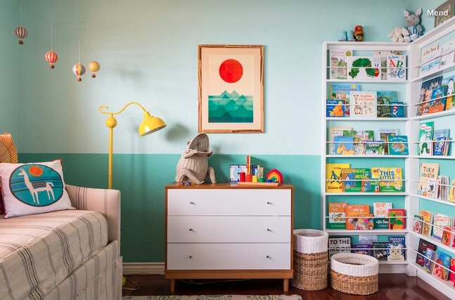 This particular room was turned into “story time” by a faux chair rail effect using paint