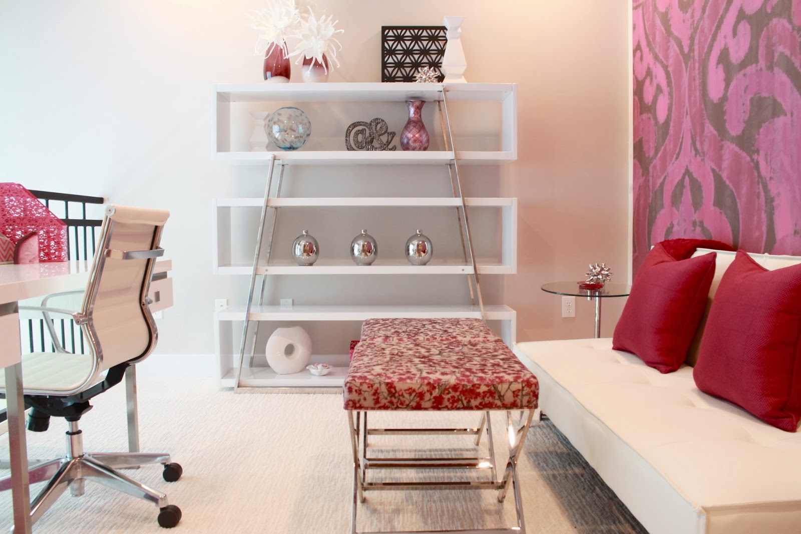 In her “loft” area, we created a study space that she could spread out in, yet be stylish as well.