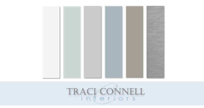 With a calming blue, cream, and sage green … we bounced these colors around the room in many places as well as pulled an icon of rabbits into the artwork.